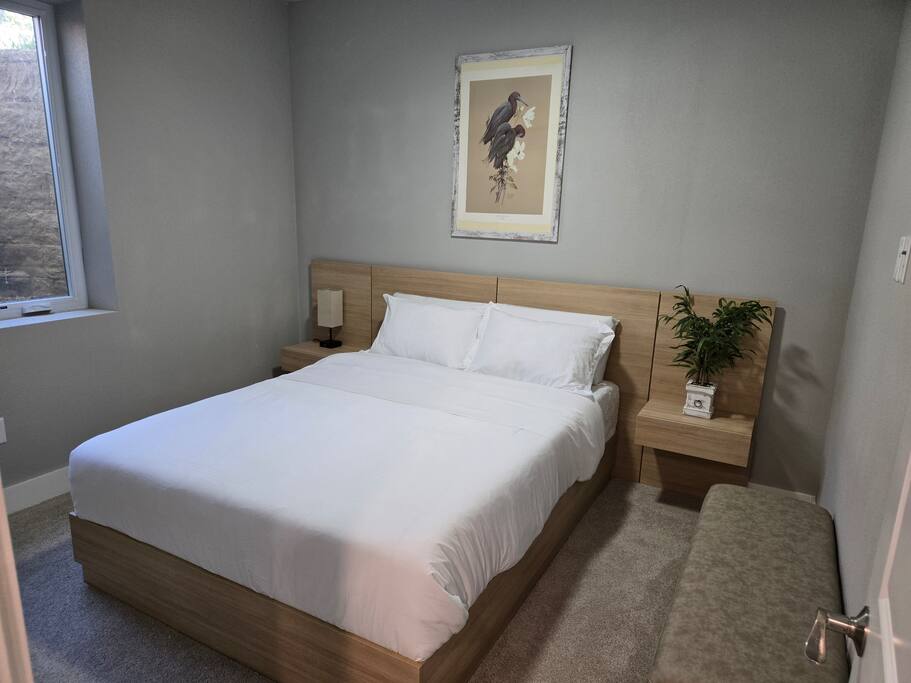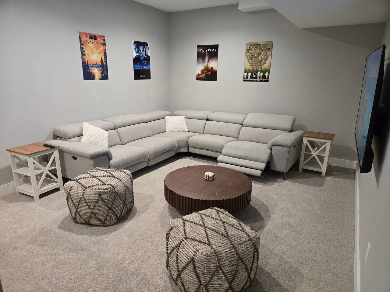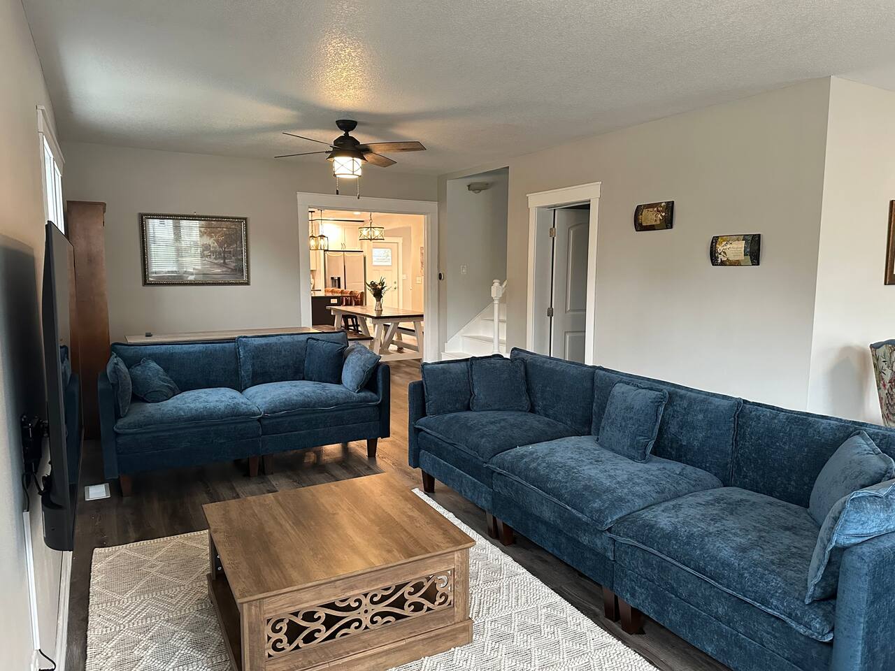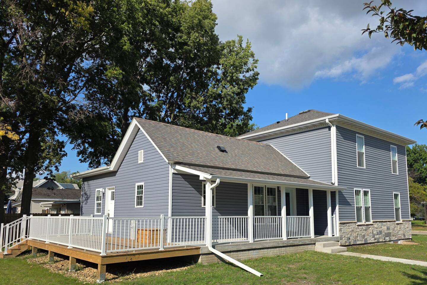 Stunning newly renovated retreat steps from downtown! Features 5 beds (4 queens, 1 king), plus sleeper sofa, modern entertainment space with reclining sectional, elegant bar, spa-like bathroom with marble vanity, spacious side deck. Perfect for groups, families, UNI events. High-end finishes throughout this charming blue historic home with stone accents. Prime location for shopping, dining, entertainment. Walk everywhere! Your upscale Cedar Falls getaway awaits!