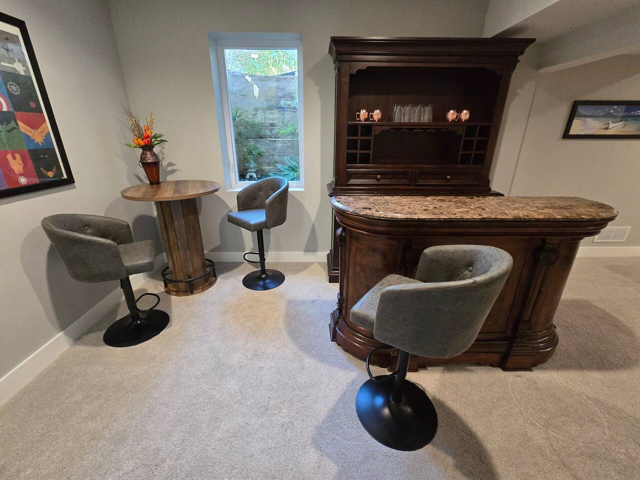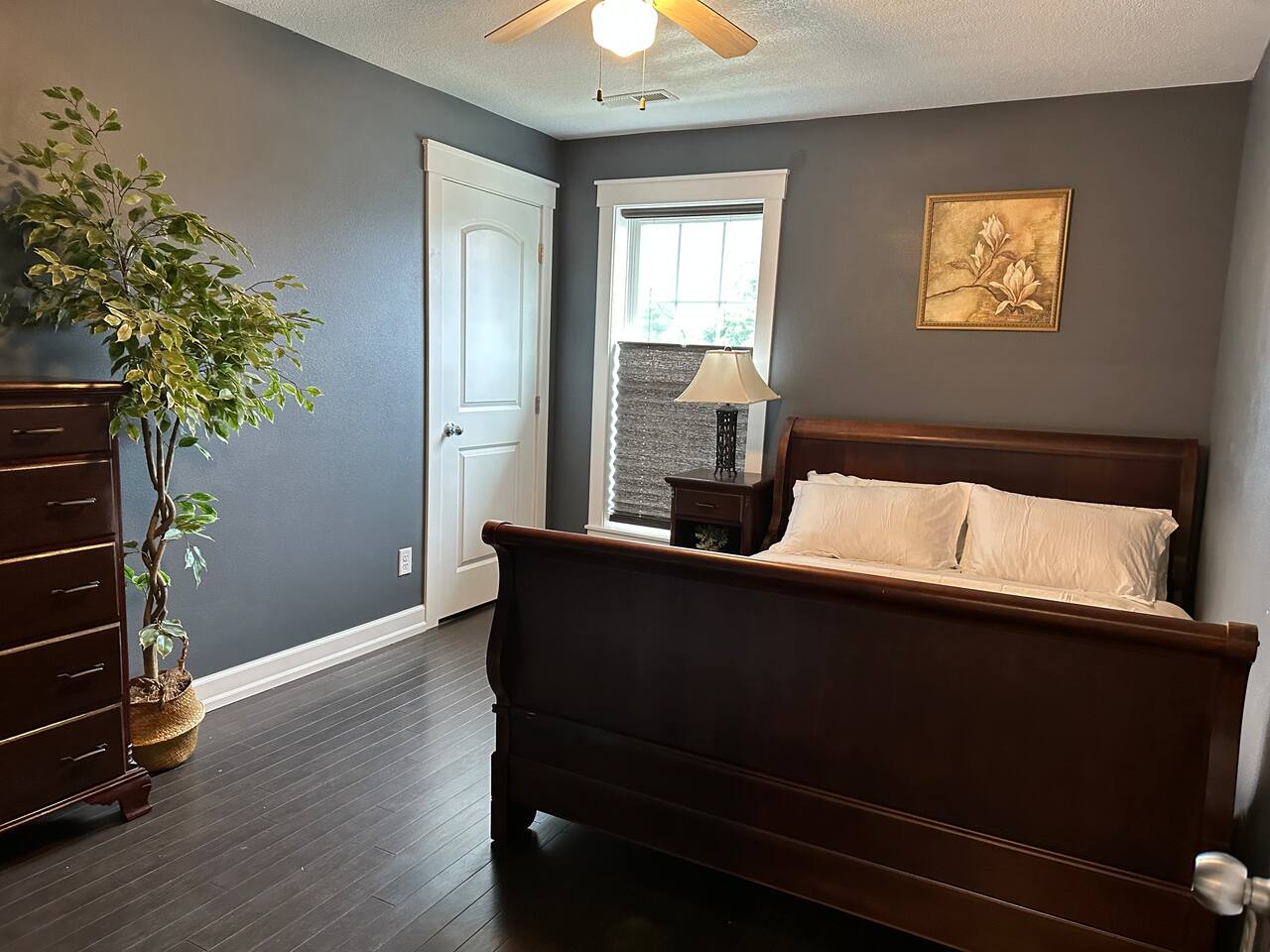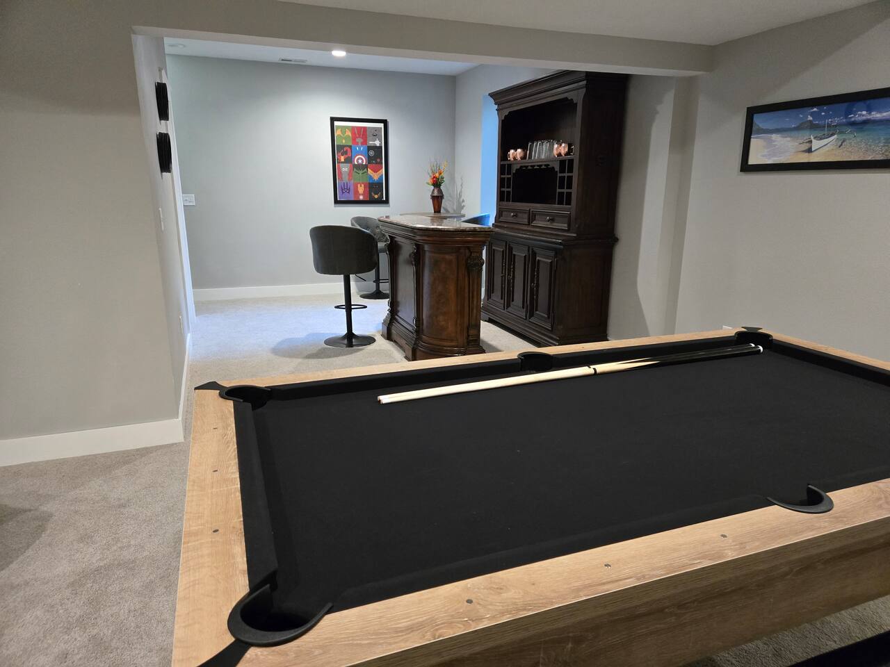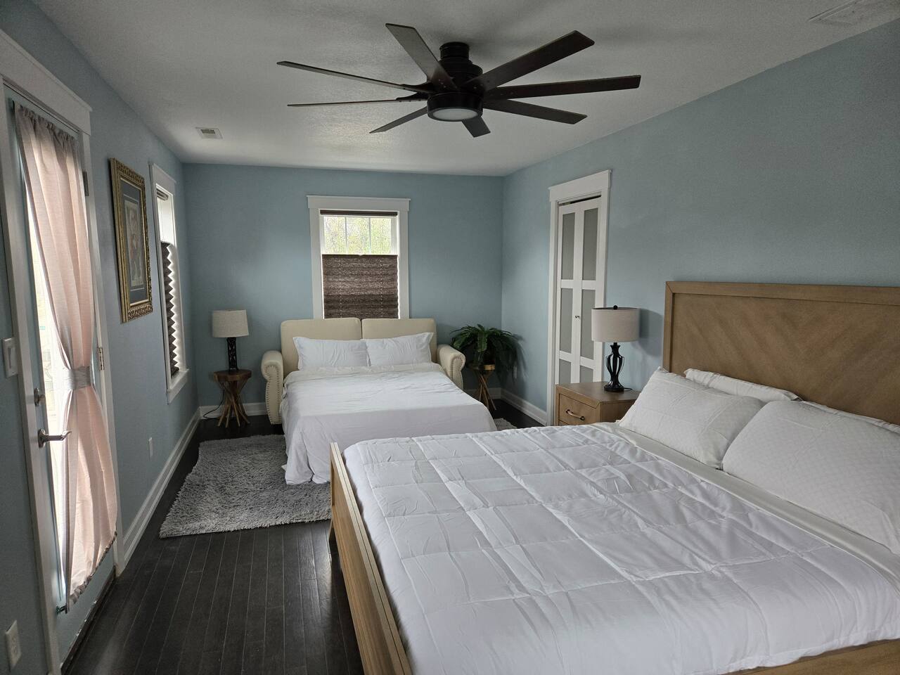 Stunning newly renovated retreat steps from downtown! Features 5 beds (4 queens, 1 king), plus sleeper sofa, modern entertainment space with reclining sectional, elegant bar, spa-like bathroom with marble vanity, spacious side deck. Perfect for groups, families, UNI events. High-end finishes throughout this charming blue historic home with stone accents. Prime location for shopping, dining, entertainment. Walk everywhere! Your upscale Cedar Falls getaway awaits!